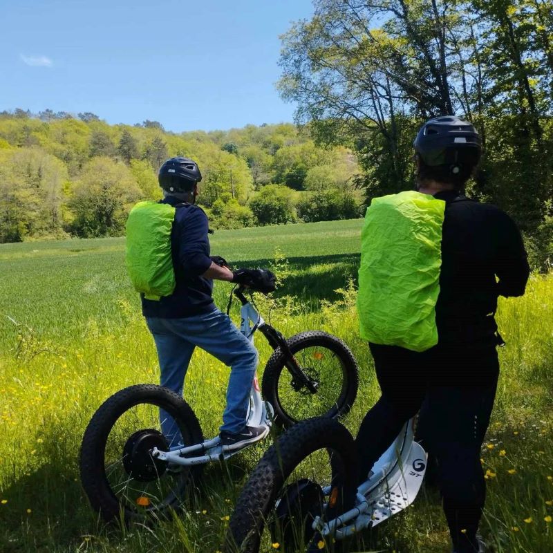 Randonnées trottinettes électriques tout terrain (anniversaire, enterrement de vie de G/F, team buildong). Balades accompagnés par un moniteur. A partir de 14 ans. Chaussures fermées obligatoires, prévoir de tenue de sport.