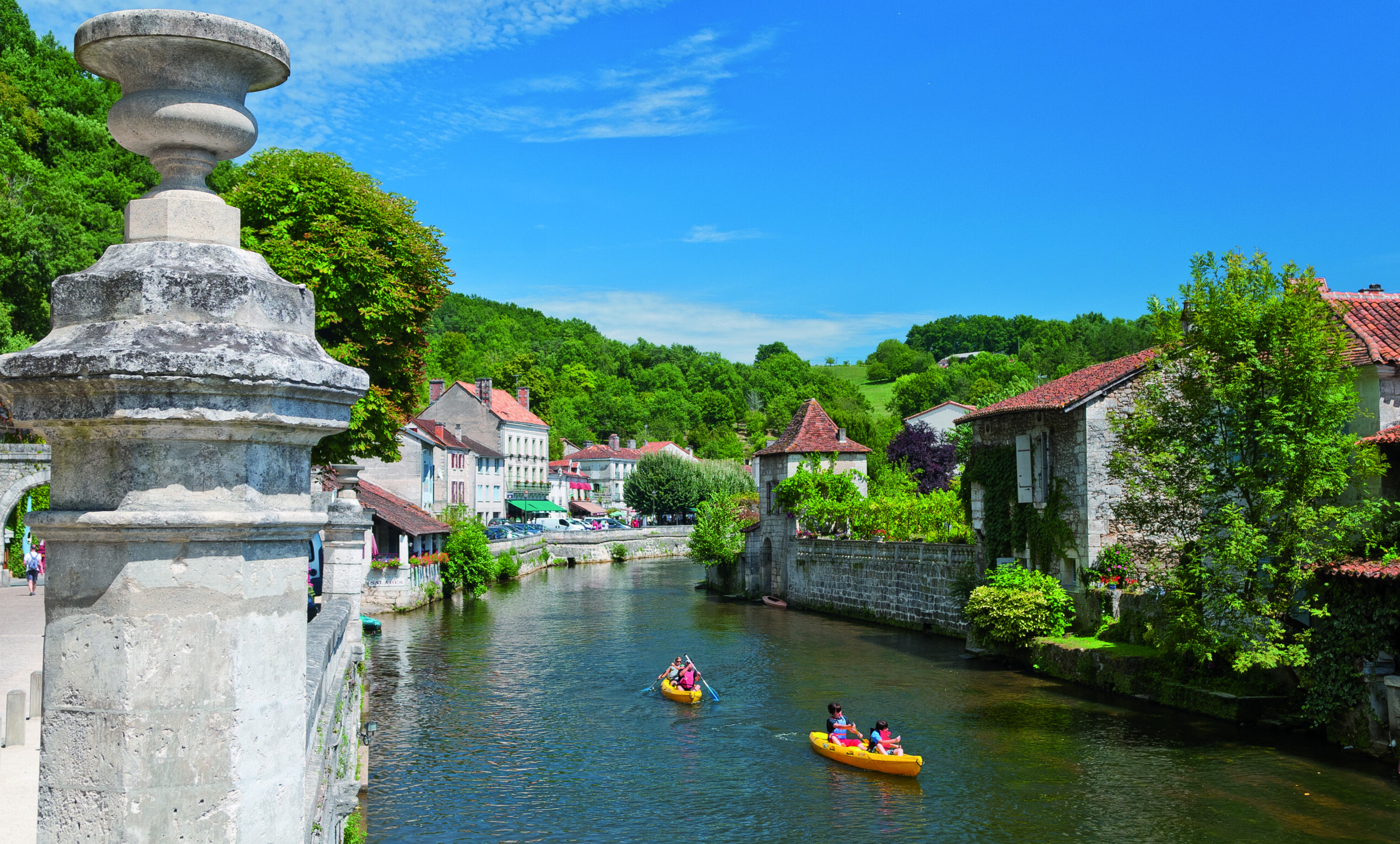 Que vous soyez passionné de nature, amateur de sport doux ou simplement en quête de détente, les eaux cristallines de la Dronne vous offrent une multitude de possibilités. En canoë, sur un paddle, en bateau électrique ou à la nage, laissez-vous porter par le courant et découvrez Brantôme, la “Venise du Périgord”.