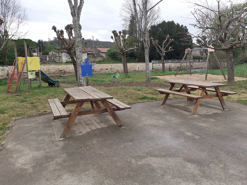 Área de juegos protegida (gratuita) a orillas del río Côle. 2 mesas de picnic a su disposición.