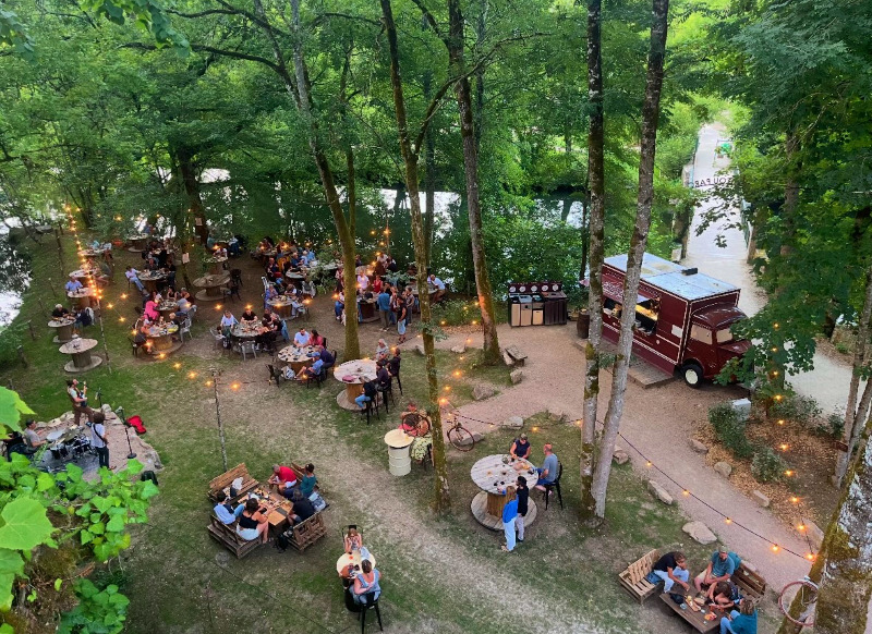 Situé à Brantôme, le Troquet de Bimbillou est une escale gourmande incontournable au bord de l’eau. Sa terrasse ombragée face à la rivière et au site troglodyte du Bimbillou Parc, offre un cadre naturel exceptionnel pour se détendre et profiter de l’instant. On y savoure de savoureuses grillades locales, idéales après une balade ou une visite du parc ainsi que des glaces artisanales. Côté boissons, le Troquet propose un large choix de bières pressions et bouteilles sans oublier une belle sélection de vins.